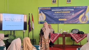 Lalu kegiatan dilanjutkan dengan penyampaian materi parenting oleh Dr. Sitti Riddah Khaerani Fatah, Sp. A. Beliau menyampaikan “Tumbuh Kembang setiap anak berbeda beda, dan selaku orang tua kita harus bisa memenuhi kebutuhan anak, baik dari segi Asuh, Asih dan Asah yaitu meliputi kebutuhan sandang, pangan dan papan yang layak, tidak lupa juga kasih sayang dan pendidikan yang sesuai kebutuhan anak kita”.